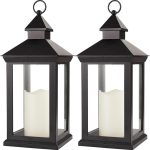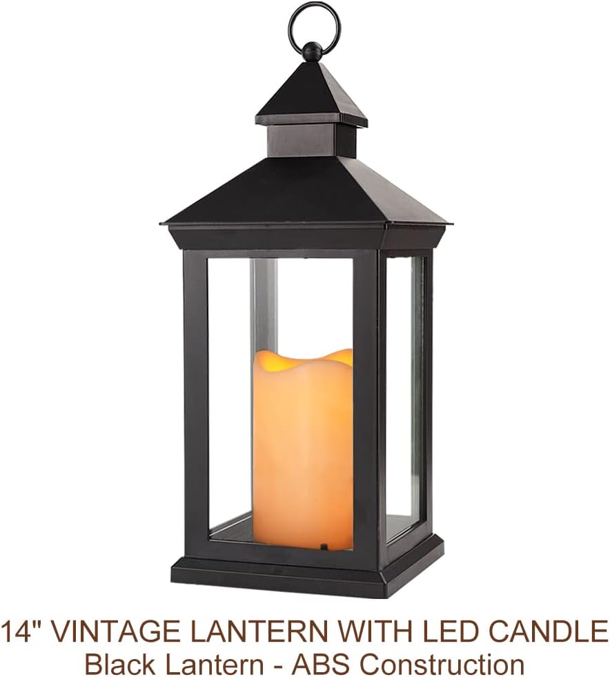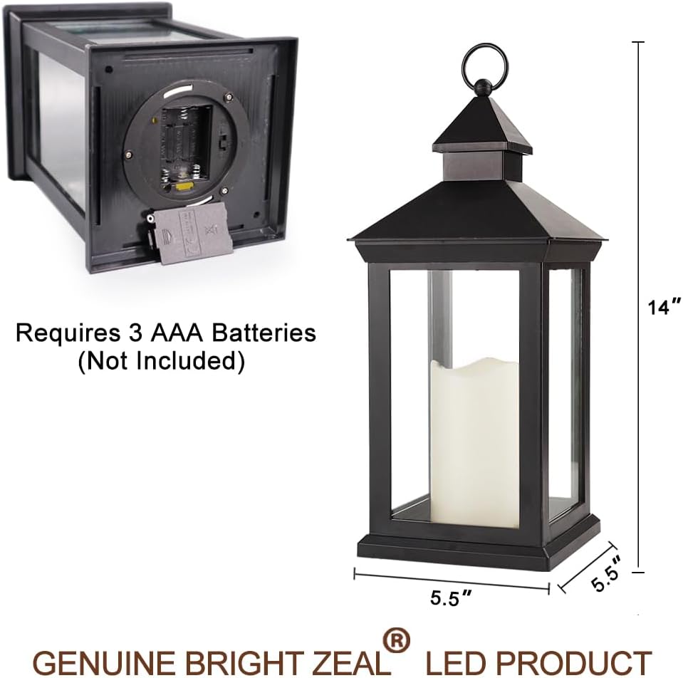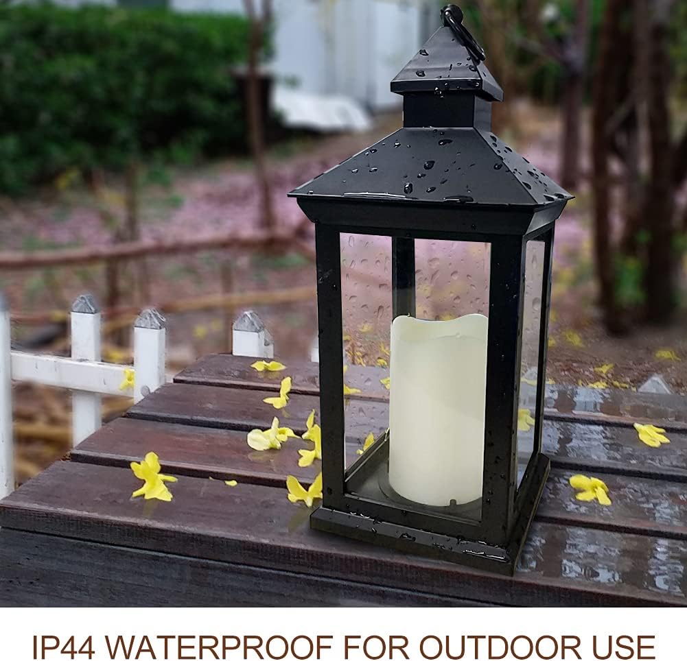 Bright Zeal 2-Pack 14″ Decorative Candle Lantern Black Outdoor Lanterns with Timer Candles – IP44 Waterproof Vintage Lanterns Battery Powered LED Decorative for Wedding – Warm White Hanging Wall