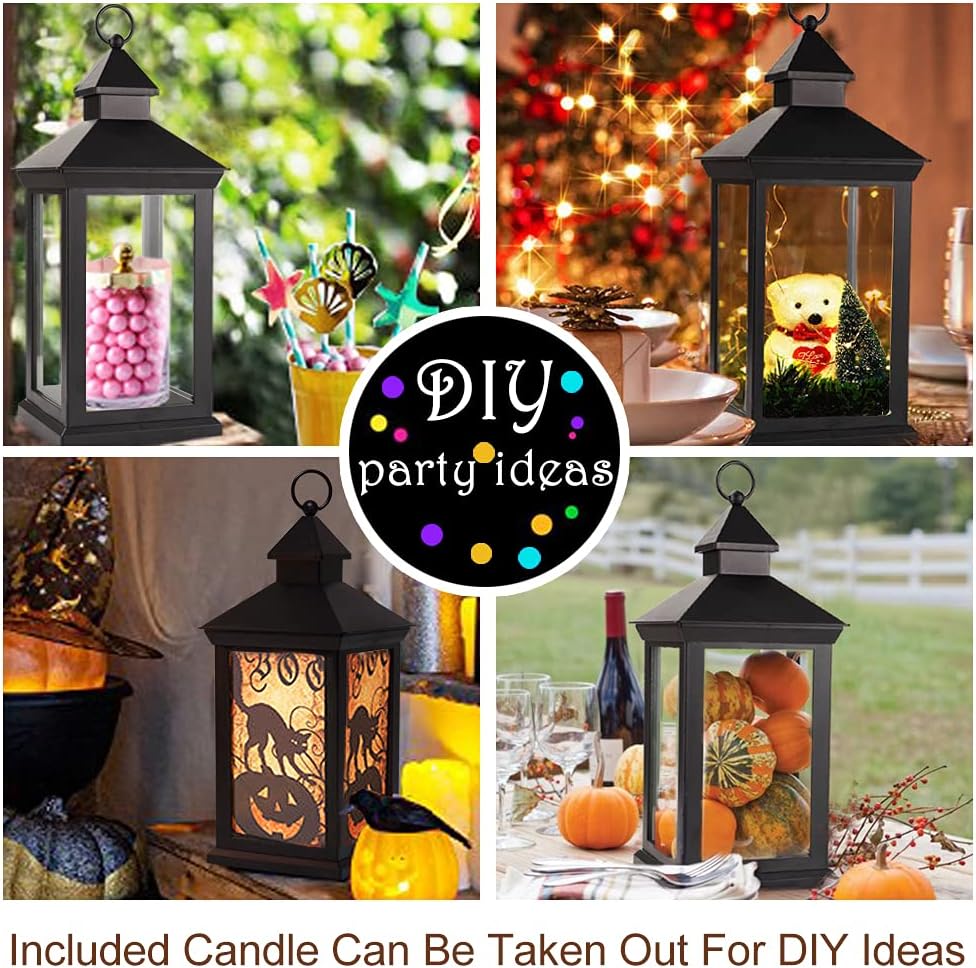 Each lantern comes with a battery-powered LED candle that emits a warm white glow, creating a cozy and inviting atmosphere. The built-in timer function allows you to set the lantern to turn on and off at your desired times, adding convenience and versatility to your decor.